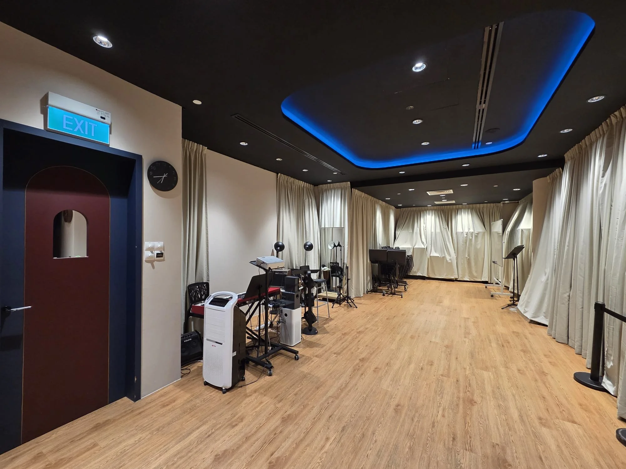 Optimal for small group practices and activities, the Chamber Studio is acoustically treated with soundproof walls (up to 55db) and thick curtains. Equipped with a keyboard, this room is ideal for mini-presentations, practice sessions and workshops.