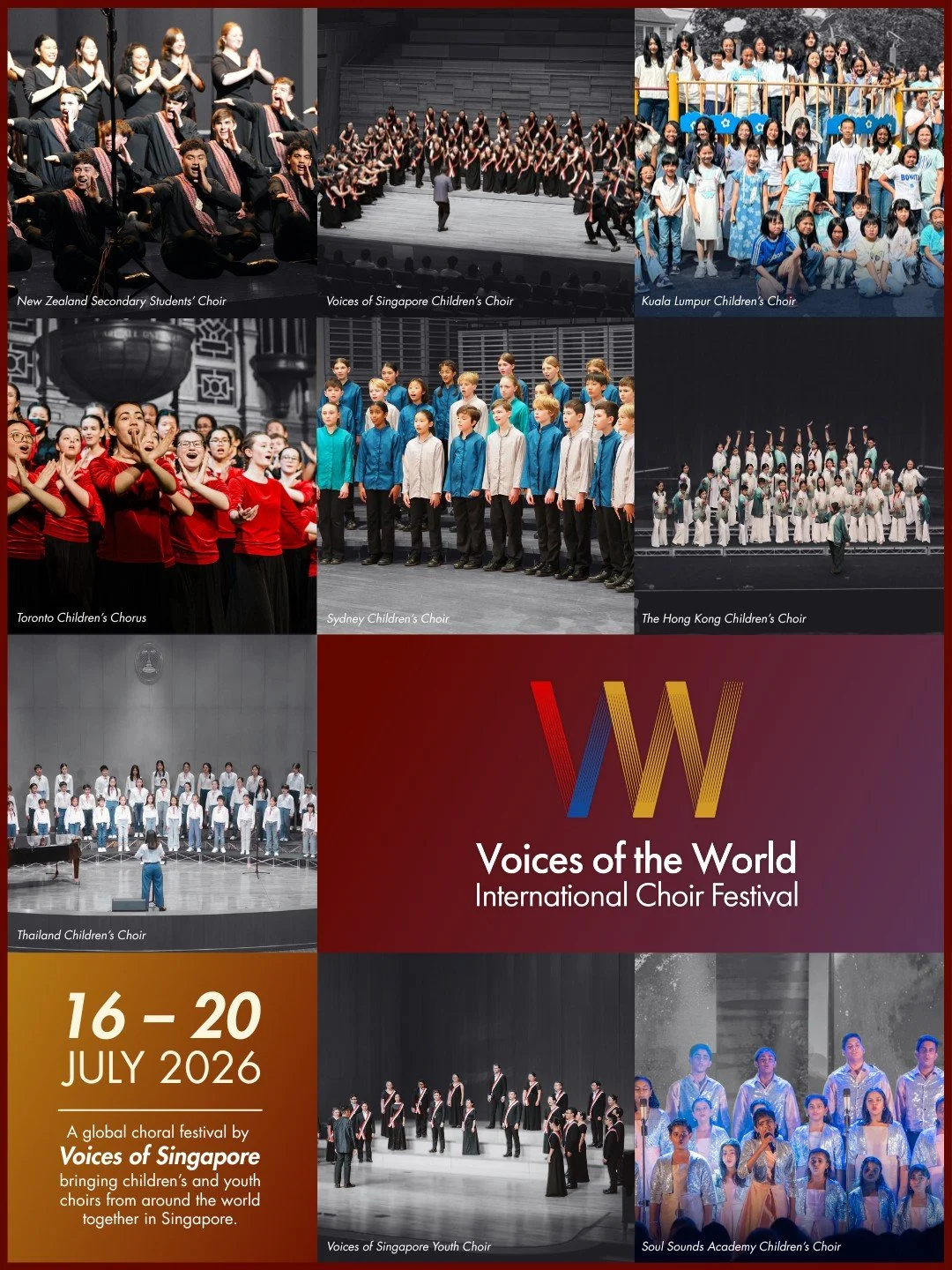 Voices of Singapore proudly represents the nation on international stages through its award-winning choirs and global collaborations. From Europe to Asia, VOS ensembles showcase Singaporeβs choral excellence and cultural heritage to the world.