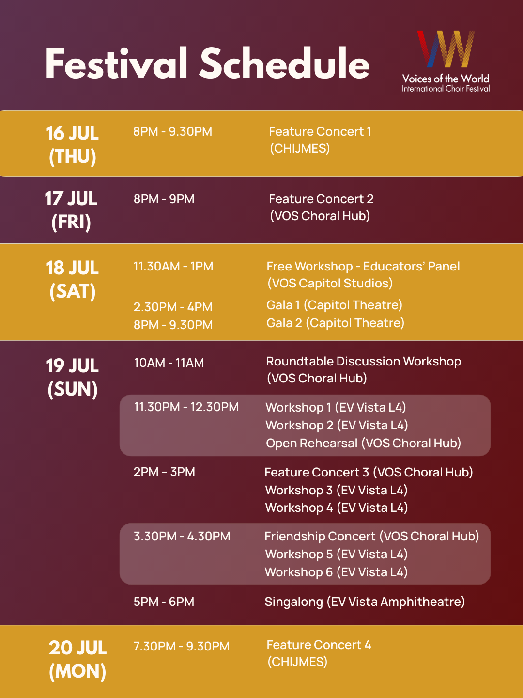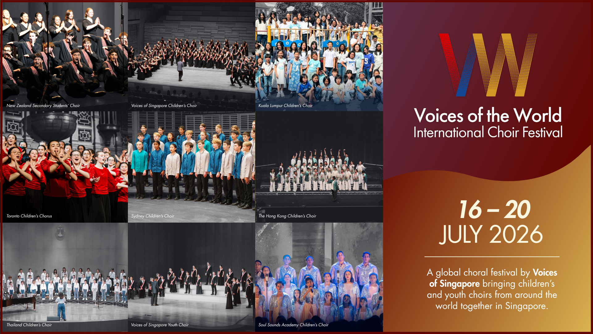 From 16–20 July 2026, Singapore will host the Voices of the World (VOTW) International Choir Festival, a non-competitive international choral festival celebrating music, friendship and cultural exchange.